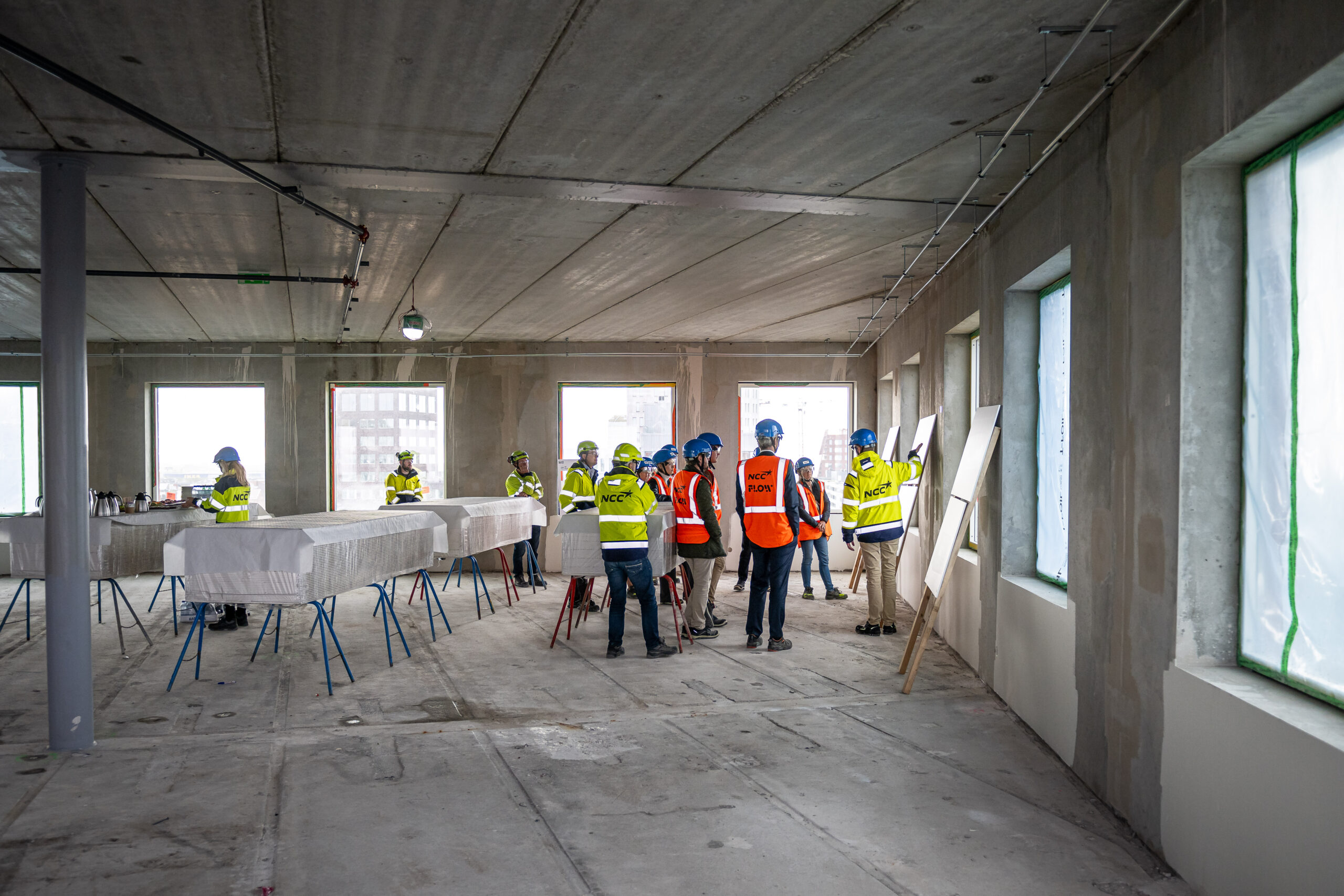 Nyligen välkomnades för första gången externa besökare till Flow Hyllie, som sedan en tid tillbaka nått full höjd. Premiärgruppen bestod av ett tiotal företagsmäklare, men redan dagen efter var det dags för nästa visning. Denna gång ett fastighetsnätverk.